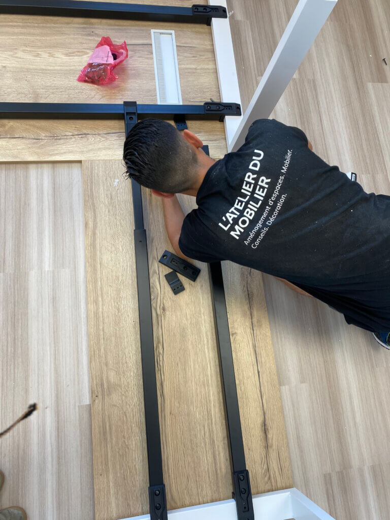 Avec Loïc et Théo, nos installateurs salariés à l’Atelier du Mobilier, vous bénéficiez d’une installation soignée et professionnelle. Ils mettent leur expertise au service de votre projet pour un résultat impeccable et une satisfaction garantie.